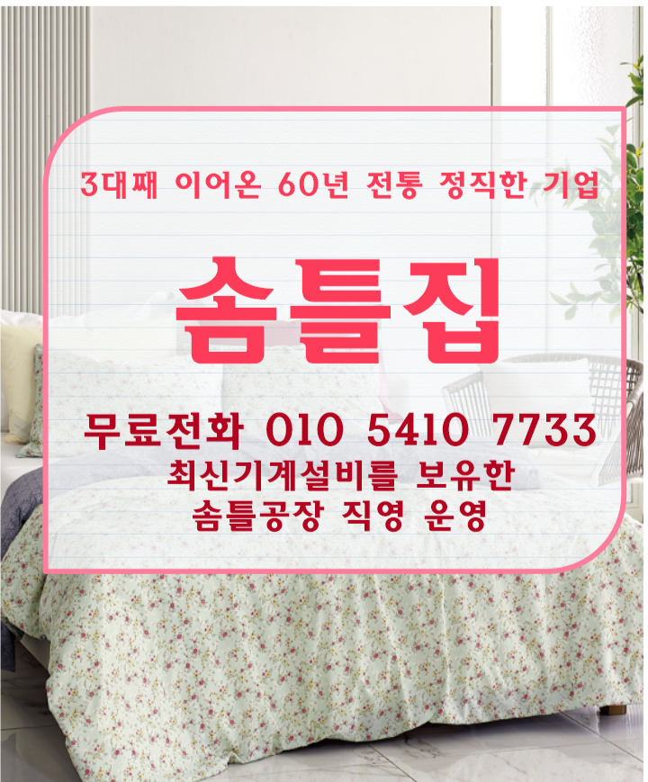 솜틀집/ 솜트는집/ 솜틀공장/ 이불솜틀집/ 목화솜틀집/ 양모솜틀집/ 혼수전문/숙박침구전문 업체